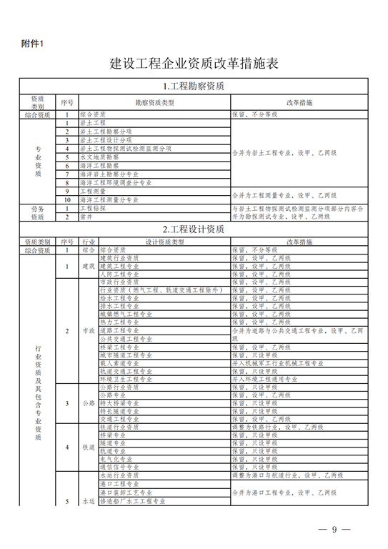 附件:1.建設(shè)工程企業(yè)資質(zhì)改革措施表.xls