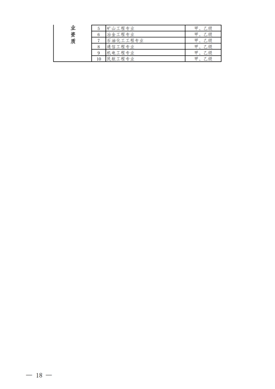4.工程監(jiān)理資質(zhì)。保留綜合資質(zhì);取消專業(yè)資質(zhì)中的水利水電工程、公路工程、港口與航道工程、農(nóng)林工程資質(zhì),保留其余10類專業(yè)資質(zhì);取消事務(wù)所資質(zhì)。綜合資質(zhì)不分等級,專業(yè)資質(zhì)等級壓減為甲、乙兩級。